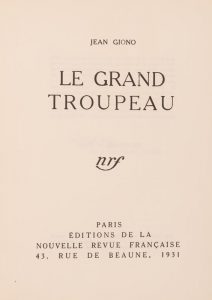 GIONO (Jean). Le Grand Troupeau. Paris, NRF, 1931. Broché. Double emboîtage en toile noire, intérieur de papier jaspé, pièce de titre au dos, lettres dorées.