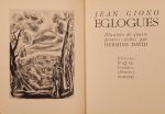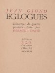 [DAVID (Hermine)]. GIONO (Jean). Églogues. Coutances, Éditions PQG [Quesnel], 1931. In-4, maroquin bordeaux et rouge, à filets dorés verticaux et ronds, doublures suédine rouge, tranche supérieure dorée, chemise demi-maroquin rouge, étui...