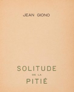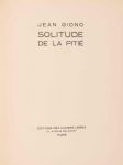 GIONO (Jean). Solitude de la Pitié. Paris, Éditions des Cahiers Libres, 25 novembre 1930. Petit in-4, broché, couverture rempliée, non paginée (38pp).