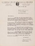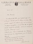 • Des deux lettres autographes signées, dont une dactylographiée, de Roland Saucier, Directeur de la Librairie Gallimard, concernant cet exemplaire.