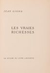 [EISENSCHITZ (Willy)]. GIONO (Jean). Les Vraies Richesses. Lausanne, La Guilde du Livre, 1936. In-8, cartonné.