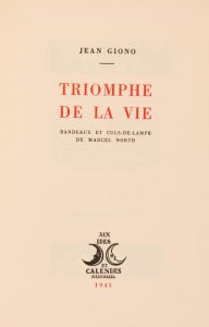 GIONO (Jean). Triomphe de la Vie. Neuchâtel, Éditions Ides et Calendes, 1941. In-4,broché.