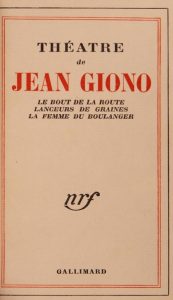 GIONO (Jean). Théâtre. Paris, Gallimard, 1943. Le bout de la route. Lanceurs de graines. La femme du boulanger. Esquisse d’une mort d’Hélène. In-12, demi reliure chagrin noir à coins, plats de papier rouge, étui bordé intérieur suèdine.