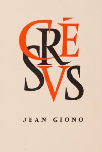 [JACQUES (Lucien)]. GIONO (Jean). Crésus. Manosque, imprimeurs Rico et Auphan, 1961. Petit in-4, en feuillets, couverture stylisée noire et rouge et étui d’éditeur.