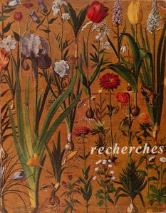 GIONO (Jean). De certains parfums. Préface de la revue Recherches n°18. Paris, Collection Recherches, 1971. In-4, couverture cartonnée illustrée, planches de compositions florales sur intissel.