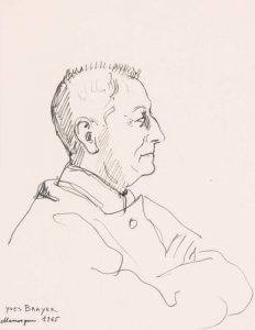 BRAYER (Yves). Portrait de Jean Giono, 1965. Dessin au feutre noir sur papier. Situé « Manosque 1965 », contresigné au crayon par Jean Giono en bas à gauche. Encadré : 26,5 x 20 cm.