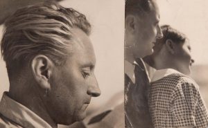 ENSEMBLE DE 2 PHOTOGRAPHIES ─ Gaston KARQUEL. Portrait de Giono, profil droit. c.1940. Tirage argentique d’époque. Plis 16,5 x 15,5 cm.