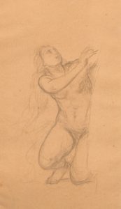 DELAROCHE (Paul). Étude de nu. Dessin original au crayon. 24 x 14,5 cm.