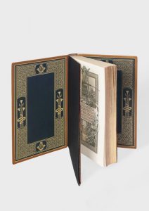 Première édition illustrée de 62 compositions d’Adolphe Giraldon, gravées sur bois par Quesnel et teintées en couleurs et or par clichés typographiques sur zinc par Ducourtioux et Huillard.