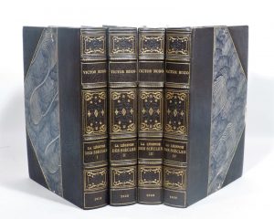 HUGO (Victor). La Légende des siècles. Édition Nationale. Paris, E. Testard, 1886. 4 volumes in-4, demi-maroquin bleu gris avec coins, dos orné de fers dorés et à froid, tête dorée, couverture et dos (Yseux scc. de Thierry-Simier).