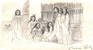 Loti aurait signé son dessin postérieurement, soit vers 1880 alors qu'il l'aurait réalisé en janvier 1872 durant son séjour à Tahiti. Il représente un groupe de femmes, avec le nom de chacune d'entre elles.
