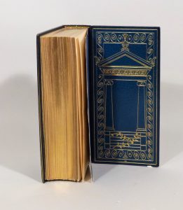agrémenté de frises, de fers et feuillages dorés, gardes de moire bleue, couverture et dos, étui (Canape, 1913).