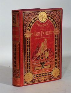 MALOT (Hector). Sans famille. Paris, Hetzel et Cie, 1887. In-4, bradel percaline rouge illustrée, plat supérieur orné d'un décor polychrome et doré, dos lisse orné de même, tranches dorées (Reliure de l'éditeur).