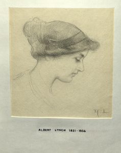 • un portrait de femme au crayon monogrammé (18 x 16 cm) par Albert Lynch, ainsi qu'un portrait d'homme au crayon et fusain monogrammé (15 x 12,5 cm)
