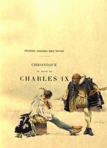 MÉRIMÉE (Prosper). Chronique du règne de Charles IX. Paris, Testard, 1889. In-4, maroquin bleu roi, jeu de filets dorés, dos orné de même, tranches dorées sur témoins, encadrement intérieur de même maroquin orné d'un semis de fleurs de lis...