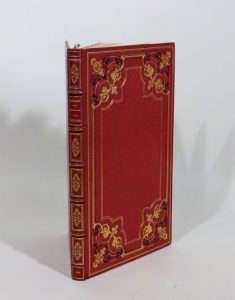 MÉRIMÉE (Prosper). L'Enlèvement de la Redoute. Paris, Rouquette, 1902. In-8, maroquin rouge, important décor d’encadrement doré et à froid, dos orné, tranches dorées, neuf filets dorés intérieurs, doublure et gardes de soie bleue, doubles...