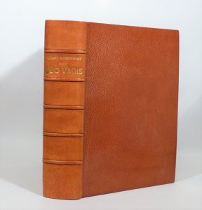 SIENKIEWICZ (Henryk). Quo Vadis. Paris, E. Flammarion, s.d. [1905-1906]. Grand in-4, basane maroquinée fauve, tête dorée, guirlande intérieure doré, doublure et gardes de balsa, non rogné, couverture illustrée, étui (Reliure de l'époque).