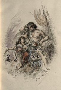 • de deux très beaux fusains originaux sur papier bleu (24 x 16,5 cm), signés du peintre orientaliste Bida. Le premier représente Un groupe de jeunes femmes découvrant un nourrisson en un panier d’osier flottant sur le Nil et le second montre Moïse, solitaire, dans un paysage de montagnes et un dessin original au crayon signé du même pour ses Souvenirs d'Égypte (18,5 x 23 cm).