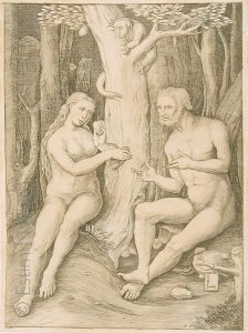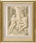 Lucas de LEYDE (1494-1533) d'après "Adam et Eve" Burin, copie réalisée d'après le cuivre original de LEYDE Dimensions 11,7 x 8,8 cm, encadrée sous verre (Épreuve rognée au sujet, jaunie, déchirures et manques)
