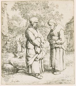 Adrien VAN OSTADE (1610-1685) "Les deux commères" Eau-forte Dimensions 10,1 x 8,7 cm, encadré sous verre (Épreuve un peu tardive, manque dans l'angle inférieur gauche, rognée au sujet avant le cuivre) Provenance : Vente Binoche et Giquello,...
