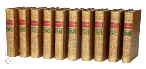 CLARISSE HARLOWE "Traduction nouvelle et seule complète par M.Le Tourneur,édition originale revue par Richardson,figures de Chodowiecki de Berlin" Genève,chez Paul Barde,1785-1786,dix volumes in-8,reliés plein veau de l'époque,dos lisse orné,en...