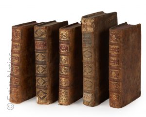 RELIURES XVIIIe SIECLE Ensemble de cinq volumes en reliures XVIIIe,états moyen dont "Mably,observations sur l'histoire de France","Fleury,discours sur l'histoire écclésiastique","Notes sur le concile de Trente"…