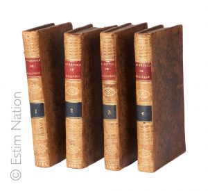 ROBINSON CRUSOE "Aventures surprenantes de Robinson Crusoé"Paris,Garnnery,1821,quatre volumes,in-12,reliés pleine basane de l'époque,bon état
