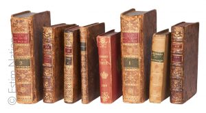 RELIURES Ensemble de huit reliures en état divers (accidents et incomplets) dont guide des amateurs,œuvres de Gresset,œuvres de Vauvenargues...