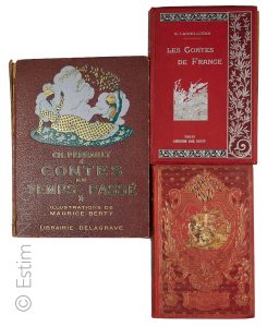 CARTONNAGES Ensemble de quatre cartonnages fin XIXe-début XXe,état moyen à bon état.1.Simond "Histoire d'un patriote Léon Gambetta".2.Lagrillière" Les contes de France".3.Du Château"Souvenirs d'un petit alsacien".4.Perrault "Contes du temps...