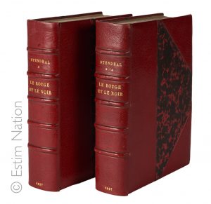 STENDHAL "Le rouge et le noir,illustrations de Daniel Girard"Gyral,Paris,1927,deux volumes grand in-8,reliés demi-maroquin à coins,dos à cinq nerfs,tête dorée,sur papier de Madgascar,avec deux dessins originaux,très bon état.