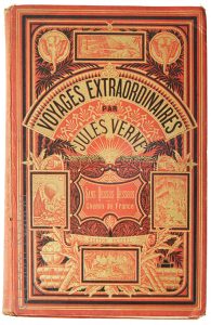 JULES VERNE "Les voyages extraordinaires,sans dessus-dessous,chemin de France"reliure-cartonnage éditeur "aux deux éléphants",non daté,fin XIXe,,grand in-8,déréglé sinon bon état.