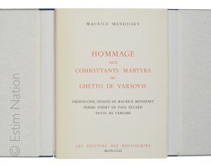 LIVRE ILLUSTRE MENDJISKY (Maurice), ELUARD (Paul), VERCORS Hommage aux combattants martyrs du Ghetto de Varsovie, trente-cinq dessin de Maurice Mendjisky, Poème inédit de Paul Eluard et textes de Vercors, Monaco éditions des Boulingrins, 1964...