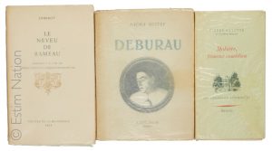 LITTERATURE FRANCAISE Ensemble de trois volumes brochés,format in-8,en très bon état.1.Gaxotte"Molière,fameux comédien"Hachette,1971.2.Diderot"Le neveu de Rameau"Théâtre de la Michodière,1963 .3.Guitry"Debureau"1963.