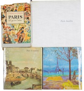 insolite, photographies par Patrice Molinard, édition Hors commerce n°3789, un des 5500 réservés aux abonnés du Club du Meilleur Livre. - Amour de Paris, Texte de Francis JOURDAIN et lithographie de Mireille MIAILHE, Paris, édition du Club du Livre du mois, 1955. Sous emboitage. - HILLAIRET Jacques, Dictionnaire historique des rues de Paris, Les Editions de Minuit, 196. Deux volumes. - HILLAIRET Jacques, Connaissance du Vieux Paris, Editions "Le club du Livre", 1956 - Paris d'autrefois, Paris des temps nouveaux, textes de Pierre COURTHION, collection Villes et lieux célèbres vus par les peintres, éditions Skira, 1957. Deux volumes. - OGRIZEK Doré, Paris tel qu'on l'aime, préface de Jean Cocteau, Paris, éditions Odé, 1949. - LAFONT Robert (direction générale), Histoire de Paris et des Parisiens, Collection Panoramas d'Histoire, Editions du Pont royal Laffont-Del Duca, 1957. - BIDERMANAS Iris, Paris des rêves, et textes autographes, Editions Clairefontaine, Lausanne, 1950. - L'opinion Economique et financière, Les Pays de l'Oise, revue brochée, n°19 décembre 1954 - BROSSOLETTE L., La France Pittoresque, Paris, Editions Librairie Delagrave, 1938. On y joint : - 8 numéros spéciaux de la revue "Crapouillot" n°48,49 et 57 d'avril et juillet 1960 et juillet 1962 sur Paris pittoresque, n°45 de juillet 1959 sur Montmartre, et V tomes sur l'Histoire de la guerre 1939-1945. - une pochette de documentation comprenant 3 numéros de la revue Liaisons (n°202, 210, 259), 13 numéros de la revue Villages de Paris, 2 numéros de la revue Paris aux cent visages, un numéro de la revue mensuelle Paris Ile de France. - un ensemble de revues d'histoire de l'art comprenant les numéros 1 à 36 et 40,41, 43, 44, 45 des "Chefs-d'œuvre secrets des grandes collections privées, supplément Art du "Figaro-Magazine". - un classeur de documentation sur Charles de Gaulle, un classeur de documentation sur la France et les merveilles du monde - un classeur de documentation sur les grands musées du monde et les grands peintres racontes la vie des Français (numéros divers de suppléments Art du Figaro magazine Télé7 jours.