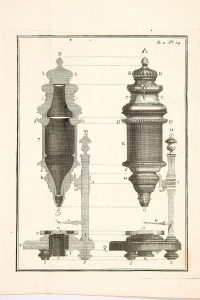 Elle est illustrée d’une jolie vignette en tête montrant un scientifique dans son cabinet, répétée trois fois, et de 53 planches dépliantes gravées en taille-douce par Jean-Baptiste Haussard et Charles Lucas.