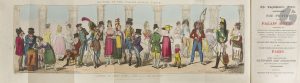 Cette édition se caractérise par son très beau frontispice dépliant en couleurs de l’illustrateur et caricaturiste britannique George Cruikshank (1792-1878) représentant une caricature des personnages que l’on pouvait rencontrer au Palais-Royal.
