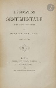 FLAUBERT (Gustave). — L’Éducation sentimentale. Histoire d’un jeune homme. — Paris : Michel Lévy frères, 1870. — 2 volumes in-8, 221 x 148 : (2 ff.), 427 pp., couverture imprimée ; (2 ff.), 331 pp., 32 pp. de catalogue, couverture...