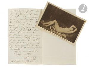 Lettre d’Alice Ozy (1820-1893), célèbre comédienne des Variétés. Elle fut la maîtresse, entre autres, de Louis-Napoléon Bonaparte, Théodore Chassériau, Edmond About et Gustave Doré ; Victor Hugo lui fit la cour sans succès.