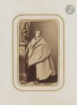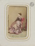 Belle collection de 28 photographies originales, format carte de visite, sur papier albuminé, de différents photographes, montées à l’unité sous double passe partout, l’un de l’époque blanc avec encadrement de filets dorés, le second blanc moderne. Elle sont réparties dans 4 boîtes de conservation modernes.