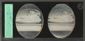 Ces 3 images stéréoscopiques font partie de la série que le photographe Antoine Louis Lemaire fit des sculptures de James Pradier.