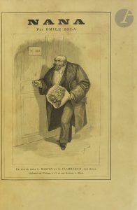 ZOLA (Émile). — Nana. Édition illustrée par André Gill, Bertall, G. Bellenger, Bigot, Clairin, etc. — Paris : C. Marpon, E. Flammarion, 1882. — Grand in-8, 295 x 200 : (2 ff.), 456 pp. couverture illustrée. — Demi-chagrin vert sombre,...