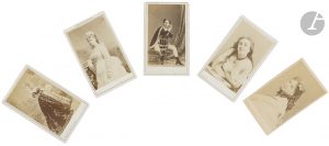 ♦ Précieuse réunion de photographies originales de quelques-unes des inspiratrices du roman Nana d’Émile Zola, à savoir Méry Laurent, Blanche d’Antigny, Hortense Schneider et Anna Deslions.