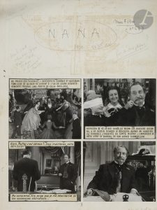 Cette maquette comprend 297 photographies originales en noir et blanc, épreuves argentiques d’époque, de 132 x 115 mm, tirées du film Nana réalisé par Christian-Jacque en 1954, interprété par Martine Carol, Charles Boyer, Jacques Castelot, etc.