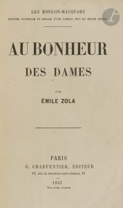 ZOLA (Émile). — Au bonheur des dames. — Paris : G. Charpentier, 1883. — In-18, 185 x 129 : (2 ff.), 521 pp., (1 f. blanc). — Demi-maroquin noir à coins, dos à nerfs, tête dorée, non rogné (reliure du début du XXe siècle).