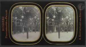 [BAL MABILLE]. DISDÉRI (André Adolphe Eugène). — Le jardin du bal Mabille. — Daguerréotype stéréoscopique, vers 1855.