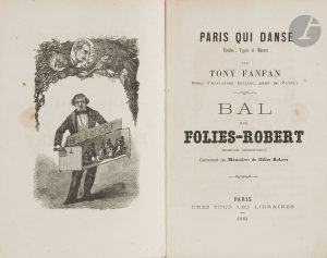FANFAN (Tony) (pseudonyme d’Antonio Watripon). — Paris qui danse. — Études, Types et Mœurs. — Bal des Folies-Robert (boulevard Rochechouart). — Contenant les Mémoires de Gilles Robert. — Paris : tous les libraires, 1861. — In-16, 169...