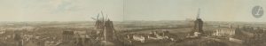 ♦ Magnifique panorama de Paris vu de la butte Montmartre, divisé en 4 feuillets représentant respectivement les vues Est, Sud, Ouest et Nord.