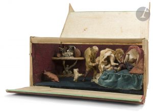 DIORAMA. — Scène érotique dissimulée dans un tiroir de cartonnier du xixe siècle — longueur : 37 cm - largeur : 26 cm - hauteur : 17 cm