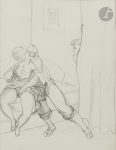 Histoire érotique en images, racontée en 15 dessins au crayon non signés, d’une très belle qualité.