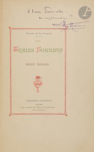 Exemplaire enrichi sur le titre de cet envoi autographe de l’auteur adressé à l’écrivain et journaliste belge Léon Dommartin, connu sous le pseudonyme Jean d’Ardenne (1839-1919) :